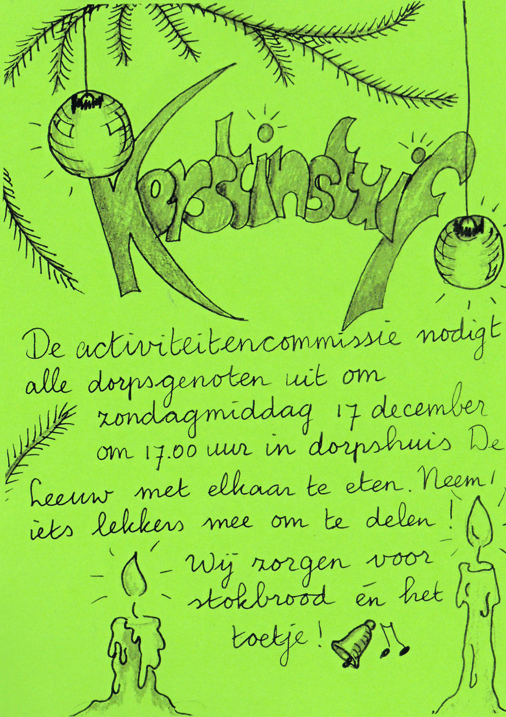 vrijdag 1 december is alweer de laatste dorpsborrel (17:30 uur t/m 21:00 uur) van het jaar.